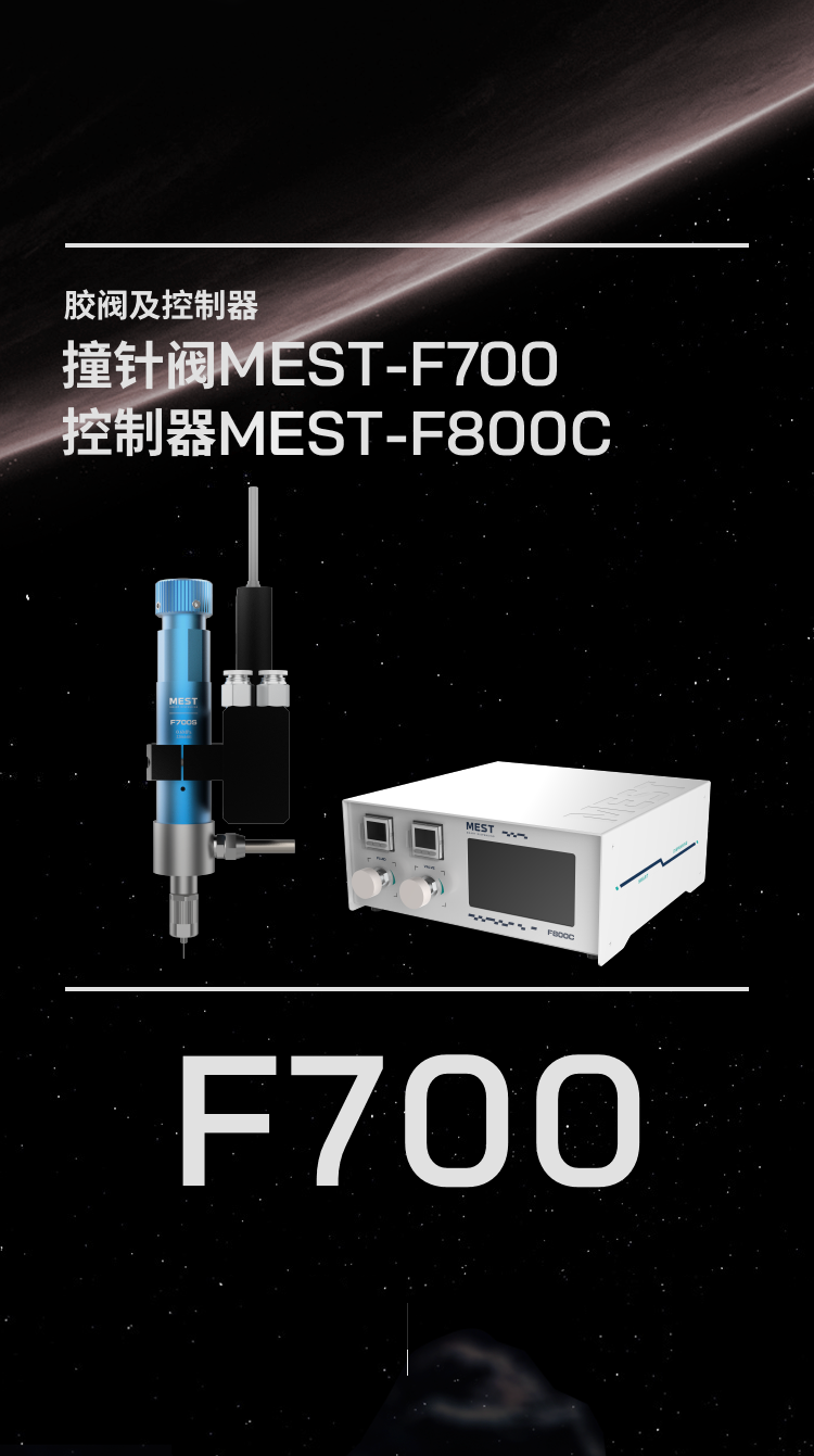 MEST-F700 是 一 款高性?xún)r(jià)比的微量、精密撞針閥,通過(guò)行程調(diào)節(jié)和適配不同的針頭,可獲得極微量、高一致性的點(diǎn)膠。